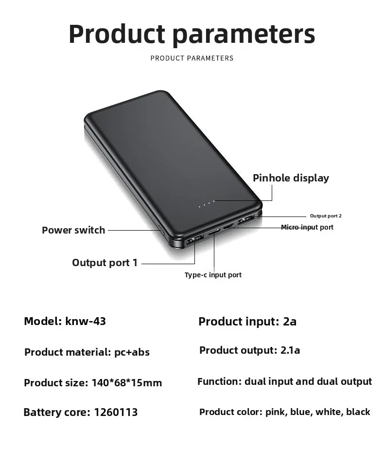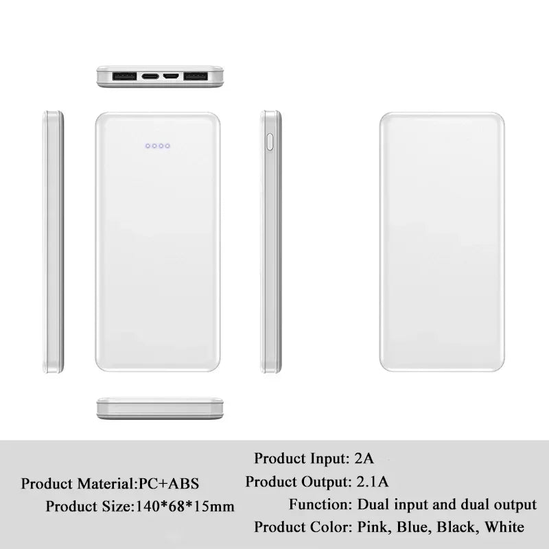 New Portable Power Bank 10W Super Fast Charger 20000mAh Ultra Large Capacity Dual Output Dual Input Design External Battery Pack